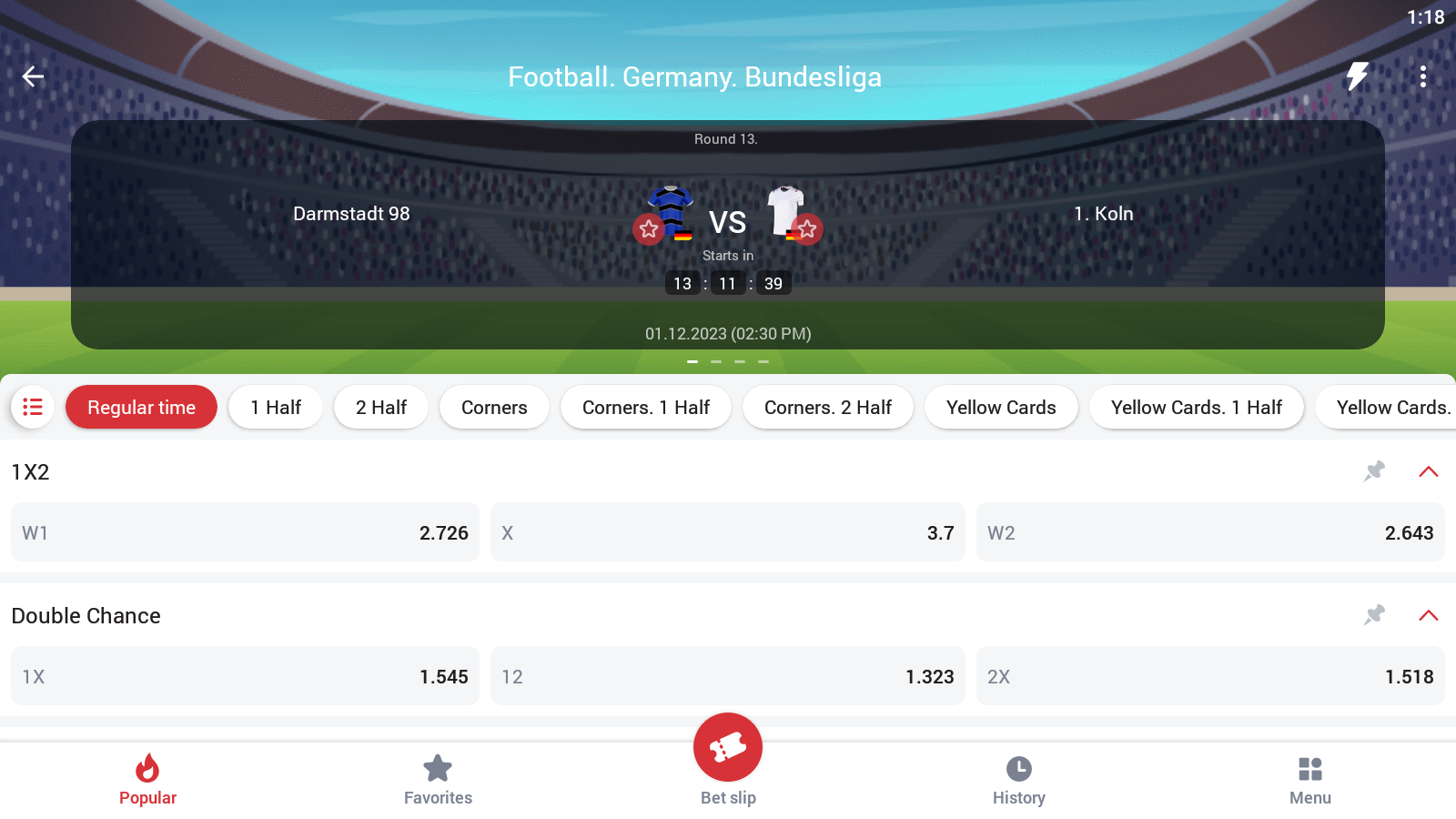 Choisis un marché (1X2, handicap, total).